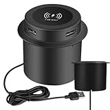 - Embedded Desktop Wireless Charger ist ein kreisförmiges unsichtbares Installationsladegerät, das den QI-Standards für das drahtlose Laden elektronischer Produkte entspricht. Das Push-on-Ladegerät verbirgt zwei USB-Anschlüsse und kann 3-Handys gleichzeitig laden