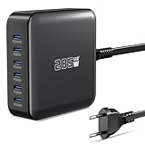 - 【6-in-1-Multiport-285-W-Ladestation】 Diese multifunktionale 285-W-USB-C-Ladestation lädt bis zu sechs Geräte gleichzeitig. Kompatibel mit MacBook Pro/Air, HP, Lenovo, Microsoft Surface, Dell und anderen Laptops, iPhone, Samsung Galaxy, iPad, Tragbarer Drucker, mobile Festplatte, AirPods, Steam Deck-Spielkonsolen, Smartwatches, Smartkameras, kabellosen Kopfhörern usw. Der 30-W-Schnellladeanschluss lädt Ihr Mobiltelefon schnell auf. Hinweis: Wenn Sie 3 oder mehr Ports gleichzeitig zum Laden verwenden, bleibt die Ladeleistung von 100 W unverändert und die Ladeleistung von 65 W sinkt auf 45 W. Während Sie Ihren Laptop laden, können Sie auch Ihr Telefon schnell aufladen.